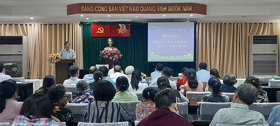 Hội nghị được nghe đồng chí Nguyễn Tiến Đạt, nguyên Chủ tịch UBND Quận 4, báo cáo viên Quận 4 thông tin cho hội nghị một số vấn đề về tình hình kinh tế xã hội Quận 4; thông tin nổi bật về tình hình thế giới, khu vực và trong nước; tình hình đấu tranh tư tưởng trên không gian mạng; thông báo kết quả Đại hội Đảng bộ Quận 4 lần thứ XII, nhiệm kỳ 2020 - 2025; định hướng công tác tuyên truyền trong thời gian tới.
