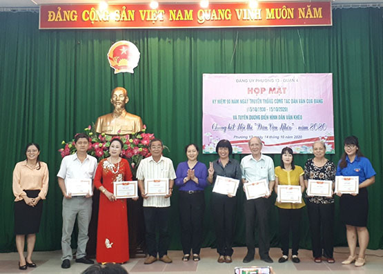 Tối ngày 14/10/2020, Đảng ủy Phường 13 tổ chức họp mặt kỷ niệm 90 năm ngày truyền thống công tác Dân vận của Đảng (15/10/1930 - 15/10/2020) và tuyên dương điển hình dân vận khéo.