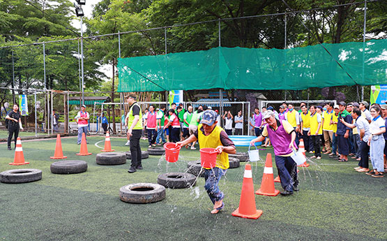 Các đội tham gia trò chơi vận động liên hoàn. |