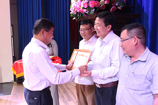 Đồng chí Bùi Quốc Tuấn, Phó Chủ tịch HĐND quận trao Giấy khen cho các tập thể. |