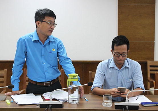 Thành viên Ban chỉ đạo thực hiện quy chế dân chủ cơ sở quận phát biểu ý kiến. |