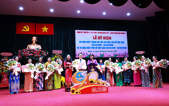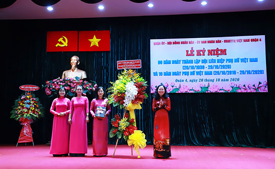Chiều ngày 20/10/2020, Quận ủy, Hội đồng nhân dân, Ủy ban nhân dân, Ủy ban Mặt trận Tổ quốc Việt Nam Quận 4 tổ chức Lễ kỷ niệm 90 năm Ngày thành lập Hội Liên hiệp Phụ nữ (LHPN) Việt Nam (20/10/1930 – 20/10/2020), 10 năm Ngày Phụ nữ Việt Nam (20/10/2020 – 20/10/2020). Đến dự có các đồng chí: Trần Thị Phương Hoa, Phó Chủ tịch Hội LHPN TPHCM; Thái Thị Bích Liên, Thành ủy viên, Bí thư Quận ủy; Lý Tấn Hòa, Phó Bí thư Thường trực Quận ủy; Lê Văn Chiến, Chủ tịch UBND Quận 4.