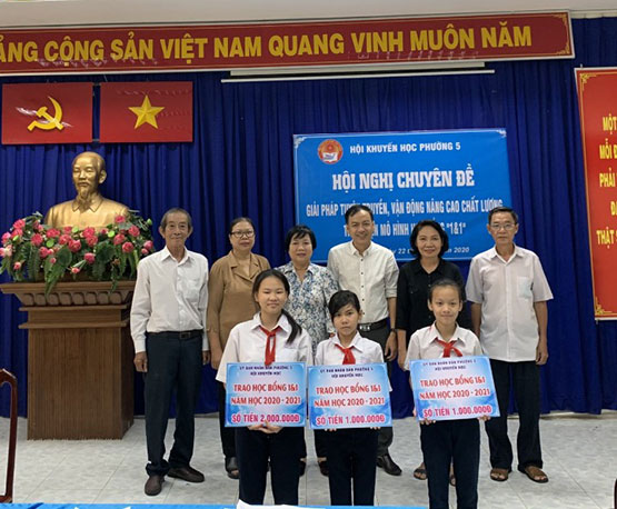 Chiều ngày 23/10/2020, Hội Khuyến học Phường 5 đã tổ chức hội nghị chuyên đề về “Giải pháp tuyên truyền, vận động nâng cao chất lượng thực hiện mô hình học bổng “1&1”. Bà Nguyễn Thị Cúc, Chủ tịch Hội Khuyến học Quận 4 đã đến dự.