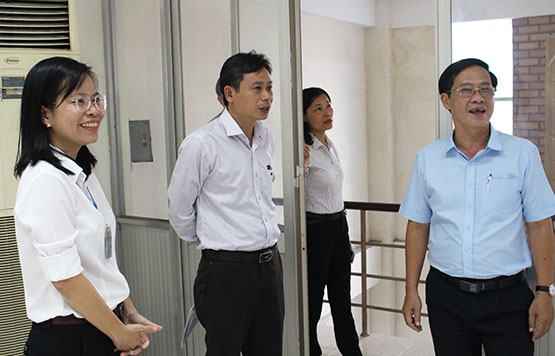 Đồng chí Lê Văn Chiến, Chủ tịch UBND quận khảo sát hội trường UBND Phường 3. |