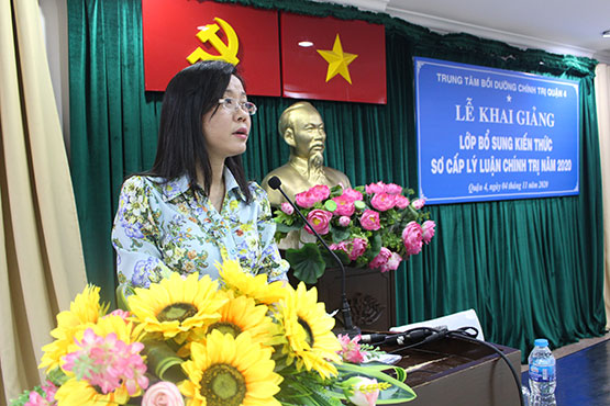 Phát biểu tại lễ khai giảng, đồng chí Trần Thị Thanh Thảo, Trưởng Ban Tuyên giáo Quận ủy, Giám đốc Trung tâm Bồi dưỡng chính trị Quận 4 đề nghị các học viên nghiêm túc thực hiện nội quy lớp học, tiếp thu đầy đủ các nội dung được truyền đạt, nghiên cứu thảo luận để đạt kết quả cao trong quá trình học tập. Đồng chí cũng đề nghị ban tổ chức lớp học phối hợp quản lý, chuẩn bị những điều kiện tốt nhất để phục vụ cho công tác dạy và học, đảm bảo cho khóa học có chất lượng.