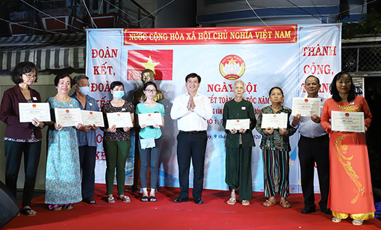 Nhân dịp này, UBND Phường 14, Quận 4 đã tặng Giấy khen cho 19 “Gia đình văn hóa tiêu biểu”, 19 “Gia đình học tập”; Ủy ban MTTQ Phường 14 tặng Giấy khen cho 31 gương “Người tốt việc tốt” tiêu biểu đã có những đóng góp tích cực trong các phong trào thi đua năm 2020; trao tặng 5 phần quà cho hộ dân có hoàn cảnh khó khăn.