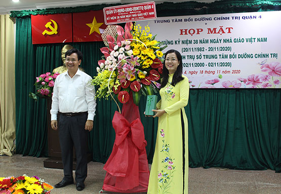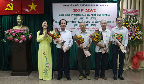 Sáng ngày 18/11/2020, Trung tâm Bồi dưỡng Chính trị Quận 4 tổ chức họp mặt chào mừng kỷ niệm 38 năm Ngày Nhà giáo Việt Nam (20/11/1982 - 20/11/2020) và 20 năm khánh thành trụ sở Trung tâm Bồi dưỡng quận (02/11/2000 - 02/11/2020). Đến dự có các đồng chí: Lý Tấn Hòa, Phó Bí thư Thường trực Quận ủy; Trần Quang Thảo, nguyên Phó Bí thư Thường trực Quận ủy Quận 4.