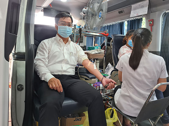 Đồng chí Đỗ Chí Chinh, Bí thư Đảng ủy/Chủ tịch UBND Phường 1 tham gia hiến máu. |