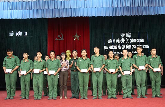 Niềm vui của các chiến sĩ khi được gặp mặt gia đình |