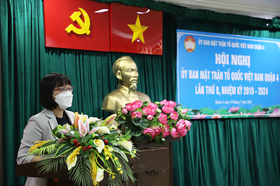 Hội nghị cũng đã thông tin tình hình kinh tế, văn hóa - xã hội quận trong 6 tháng đầu năm và phương hướng nhiệm vụ 6 tháng cuối năm 2022; hiệp thương bổ sung 1 Ủy viên Ủy ban MTTQ Việt Nam Quận 4 nhiệm kỳ 2019 - 2024.