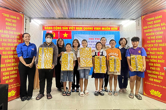 Các em thiếu nhi được trao tặng quà tại diễn đàn. |
